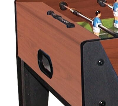 Le babyfoot Garlando F-Zero a des dimensions de 80 cm de hauteur, 108 cm de longueur et 95 cm de largeur pour un poids de 23 KG, il est parfaitement adapté aux enfants et leur permettra de jouer en toute sécurité. La surface de jeu de 105 x 58 cm est fabriquée en mélaminé, offrant une surface de jeu lisse et rapide pour des parties dynamiques. La caisse et les pieds sont en bois MDF pour une grande stabilité et une meilleure résistance aux chocs. Après un but, la récupération des balles se fera directement derrière la cage. Les barres télescopiques permettent une manipulation aisée et sécurisée pour les plus jeunes. Cependant, il est possible de changer les barres et partir sur des traversantes ce qui permettra de fluidifier le va-et-vient des barres et éviter les chocs lorsque vous mettrez de gros coups. Les joueurs seront de couleurs, bleu et rouge comme les babyfoot vintage dans les bars. Tout ça pour un prix raisonnable vu la robustesse.