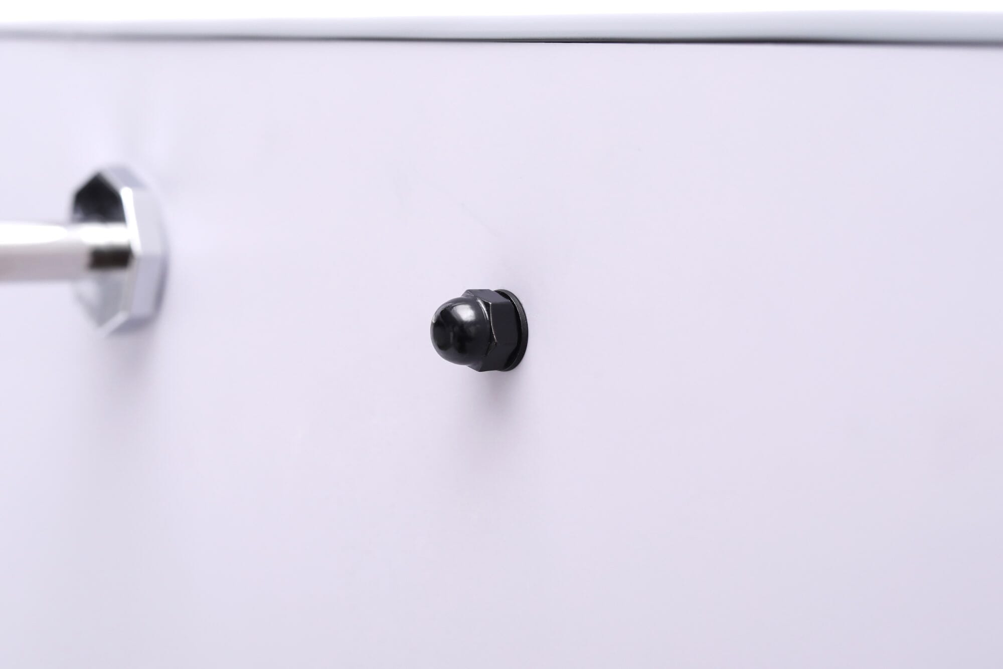 Le babyfoot Catenaccio d'extérieur Acqua est fabriqué en WPC, une matière synthétique inovante. Pour uns solidité sans égale, la caisse est épaisse de 25mm, un choix très supérieur à ce qu'on trouve chez les autres fabricants. Cette matière est utilisée pour la fabrication de meubles de salle de bain et résistera donc à l'humidité. La longueur du Acqua est de 164cm pour une largeur de 77cm sans les barres et une hauteur de 97,5cm. Le terrain est équipé d'un tapis en Gerflex vert pour une jouabilité et un contrôle de la balle parfaite. Les barres sont en inox pour résister dans le temps et sont équipées de tampons en nylon pour une glisse inégalable comme on peut retrouver sur une table Bonzini, René Pierre ou Stella. Les joueurs en fonte d'aluminium sont peints à la main de couleur rouge VS bleu. Afin d'asseoir sa stabilité, la marque a choisi des pieds en métal avec un revêtement anti-rouille. Les pieds sont équipés de vérins pour modifier la hauteur à votre convenance. Toute la visserie est aussi en Inox. De part et d'autre du terrain, on retrouve des cages chromées ainsi que des compte points aux couleurs des joueurs. Le retour des balles se fait sur le panneau long au niveau des cages.