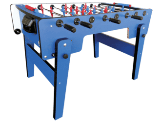 Le babyfoot est disponible de couleur bleu ou couleur bois. Livré avec 10 balles blanches et un spray lubrifiant pour les barres. Il sera livré au rez-de-chaussée pour les appartements et devant votre portail pour les maisons. Le produit est garanti 2 ans et le montage est simple (environ 40 minutes).