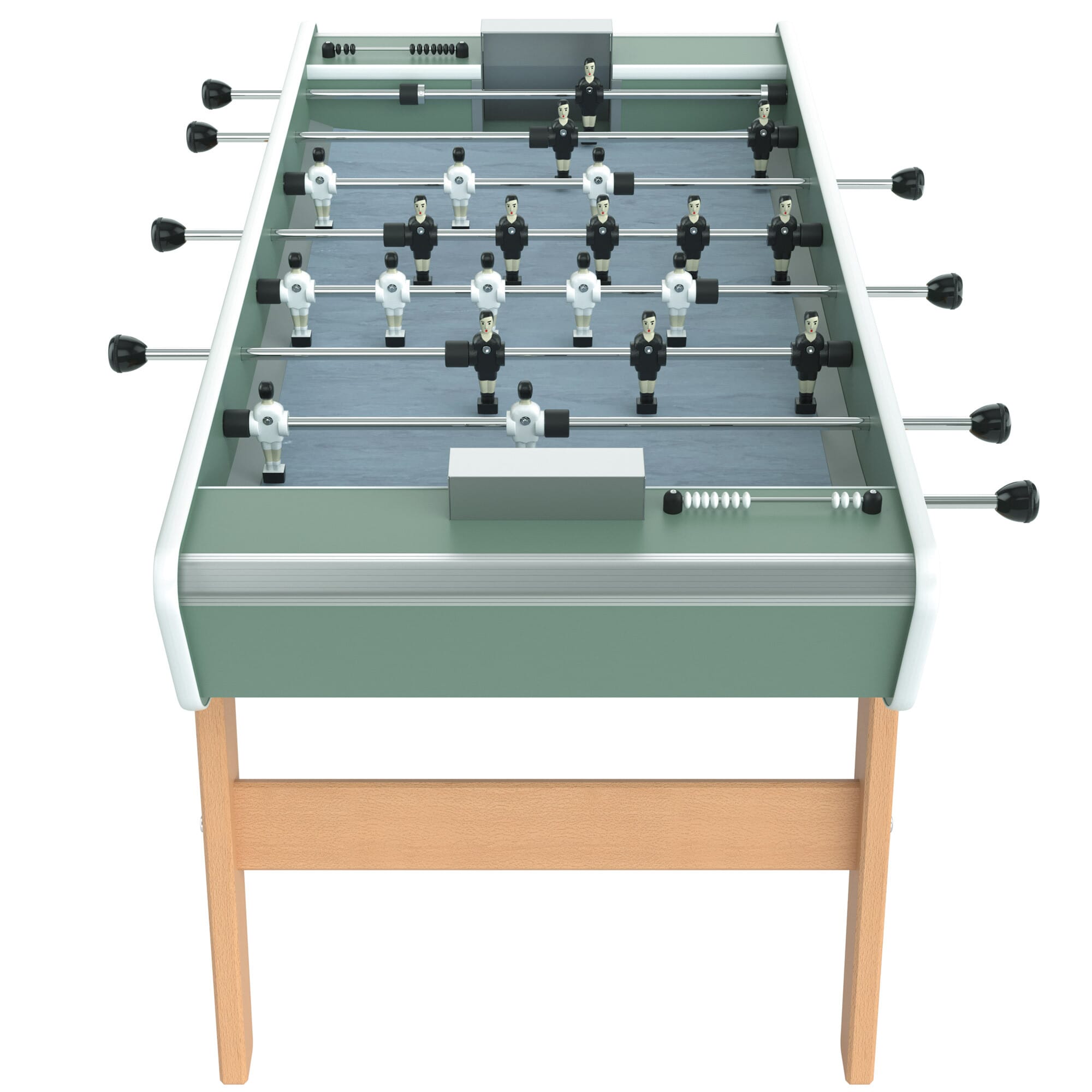 Fabriqué en France dans les ateliers Stella à Tourcoing, ce modèle est conçu pour offrir à la fois robustesse, stabilité et qualité de jeu. Sa structure solide permet de profiter de parties intenses pendant de nombreuses années. Les joueurs noirs et blancs en aluminium, vissés directement sur les barres, sont emblématiques de la marque et participent aux sensations de jeu uniques propres à Stella.