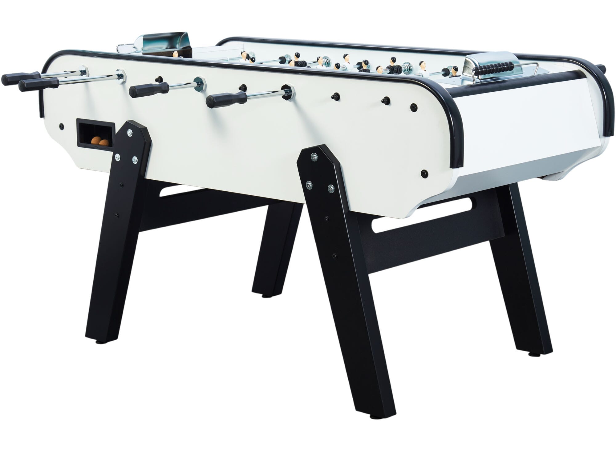 Conçu pour offrir une qualité de jeu exceptionnelle, le Scudetto Blanc associe une table de jeu en mélaminé robuste et des joueurs en aluminium montés sur des barres en acier avec un système de serrage de gorge, garantissant stabilité et précision. La surface de jeu en vinyle assure une durabilité optimale tout en permettant un contrôle de balle précis, pour des parties intenses.