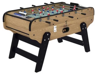 Conçu avec des panneaux mélaminés couleur hêtre de qualité, des barres et cages en acier chromé, et un placage imitation vieux chêne à la texture nervurée pour un rendu réaliste, ce modèle combine esthétisme et résistance. Ses longues poignées offrent une prise en main confortable, tandis que les joueurs en aluminium peints à la main glissent sur le tapis Gerflex pour une expérience de jeu fluide et agréable.