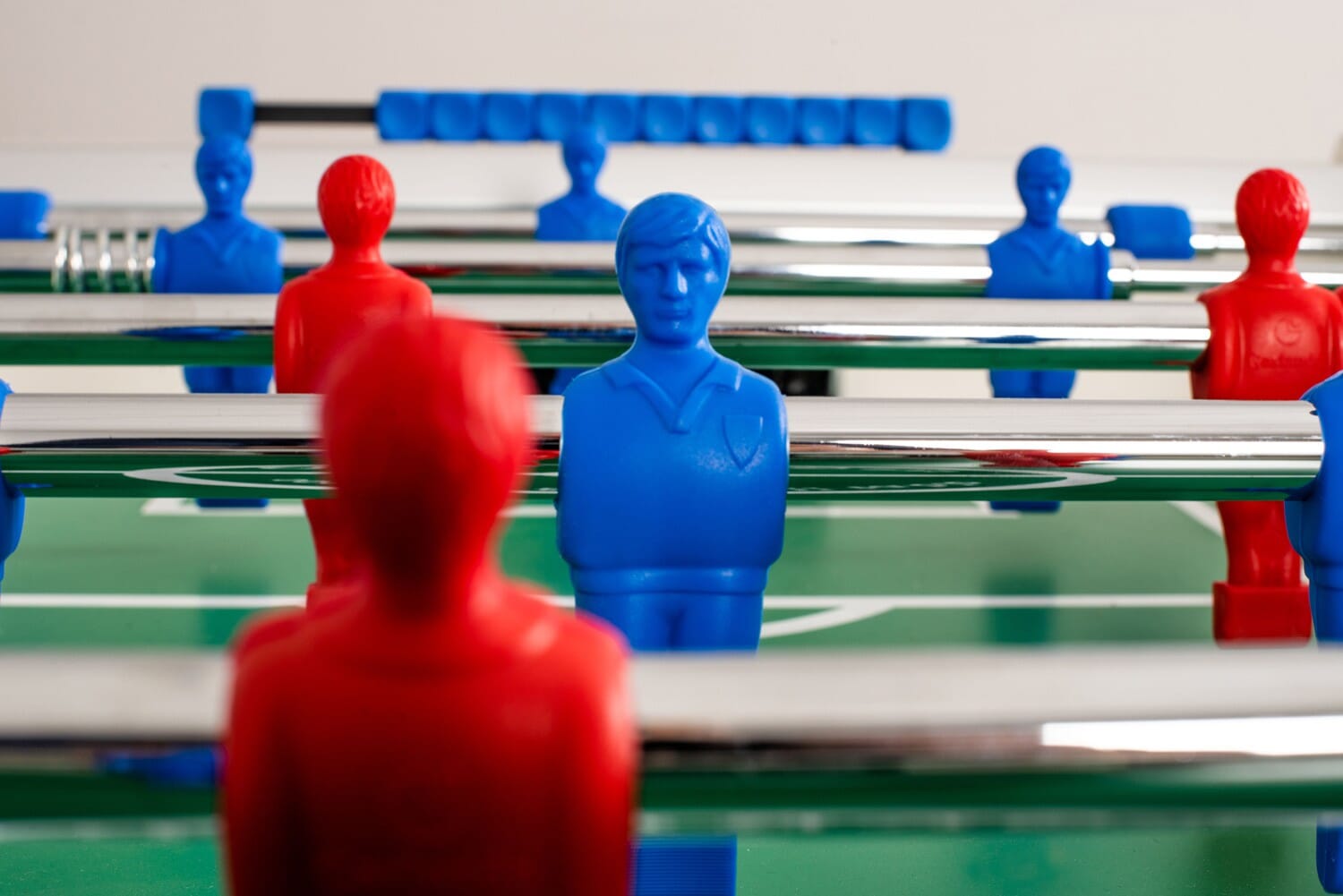 Joueurs en plastique haute densité, moulés directement sur les barres (couleurs bleu et blanc)