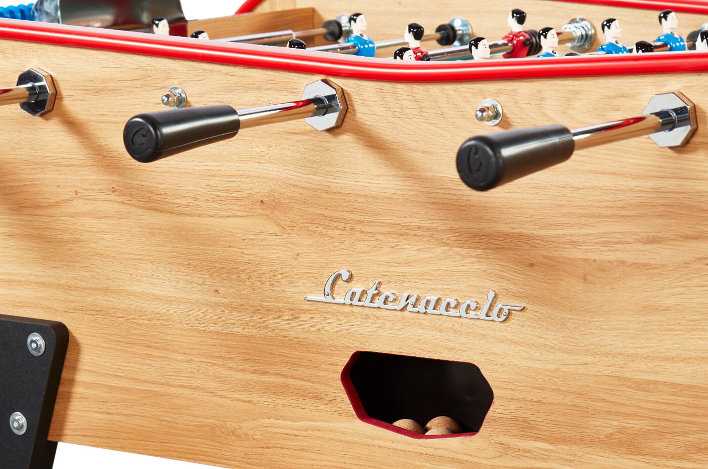 Catenaccio est une marque française de babyfoot avec 11 années d'expérience. Leur gamme s'élargie régulièrement pour proposer des designs alliant tradition du babyfoot français et lignes modernes. Le point fort de la marque est un excellent rapport qualité-prix.