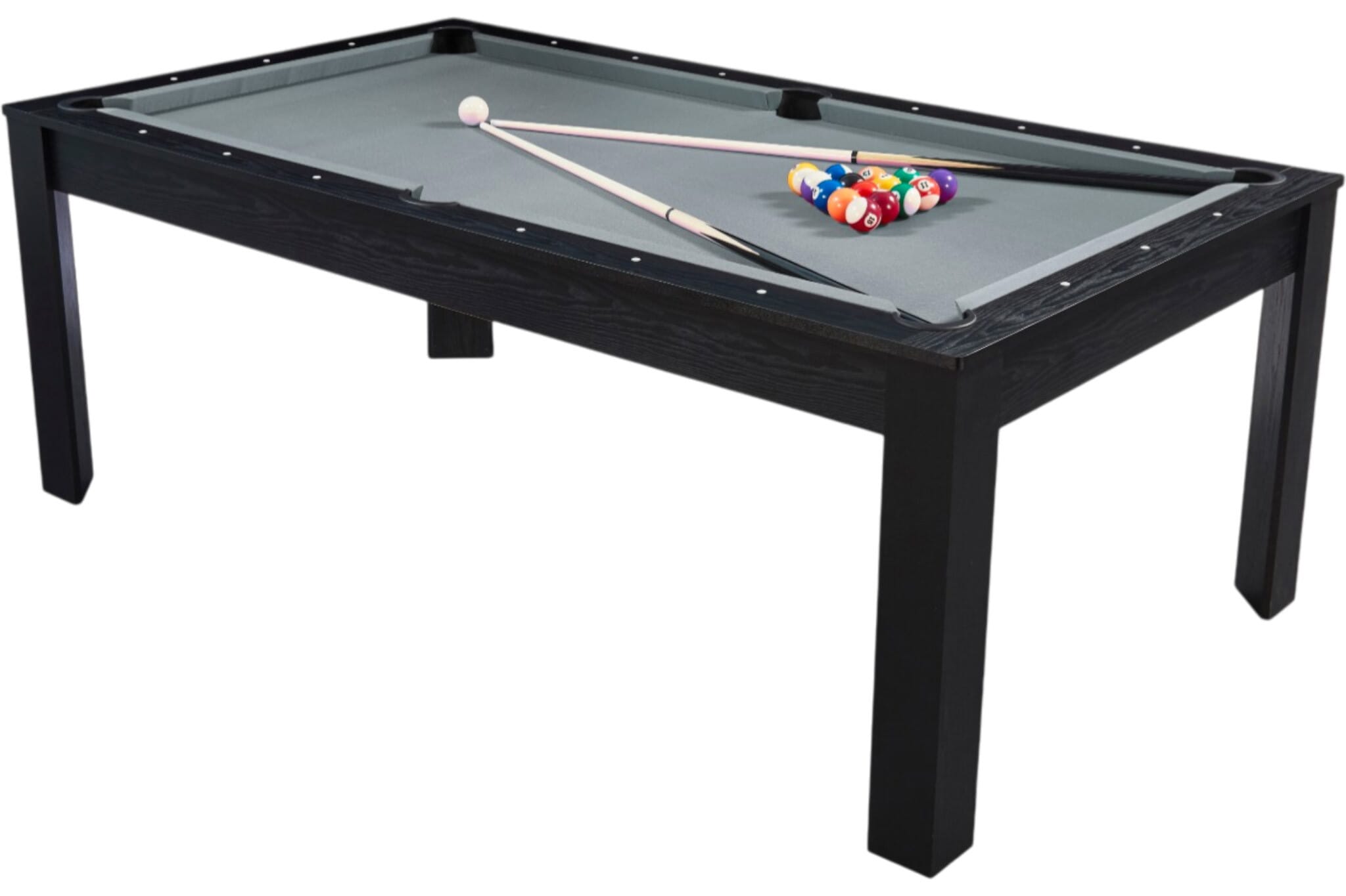 La table billard convertible 7 FT Catenaccio Noir avec tapis gris est pensée pour ceux qui veulent profiter d’un vrai billard à la maison… sans sacrifier leur espace de vie.
