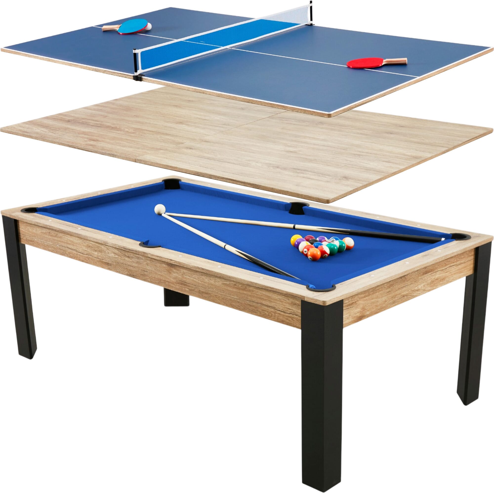 Et si l’envie vous prend de changer de jeu, les plateaux réversibles permettent également de transformer la table en table de ping-pong.