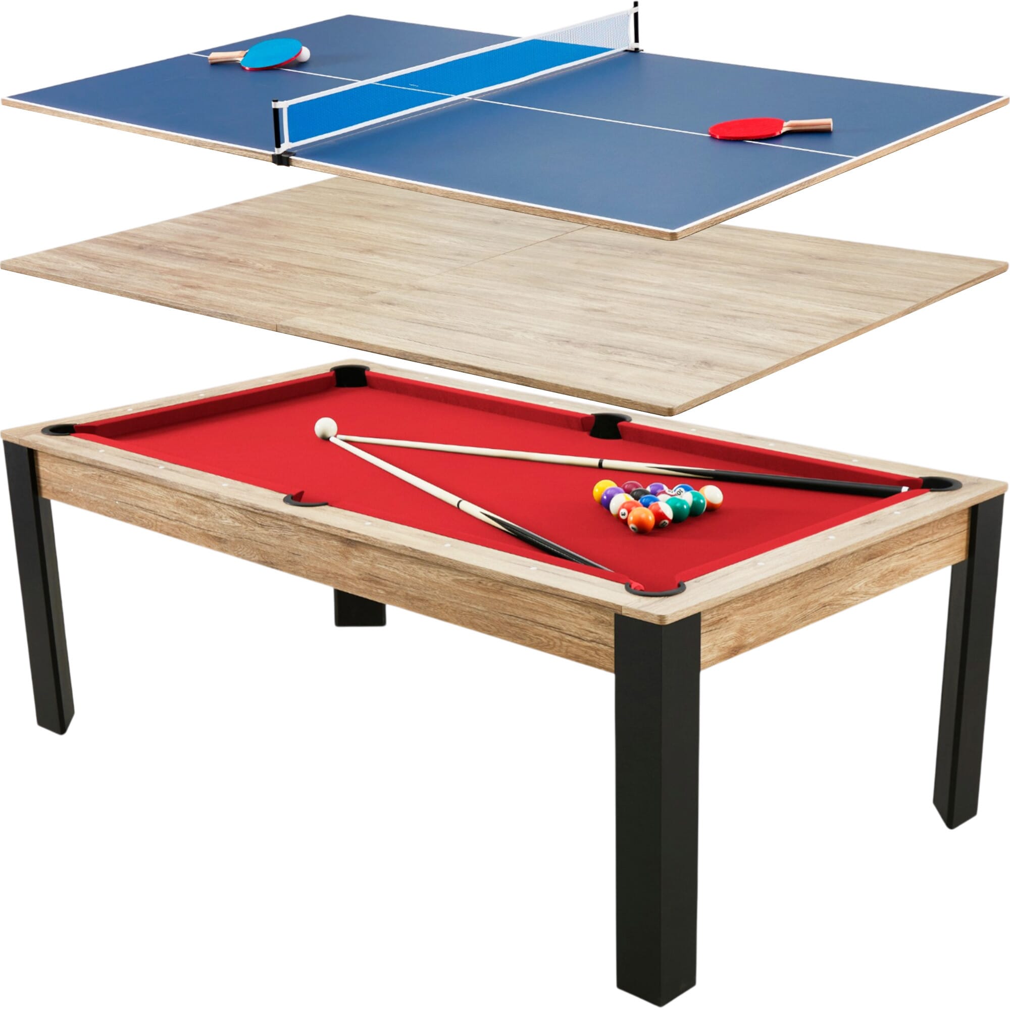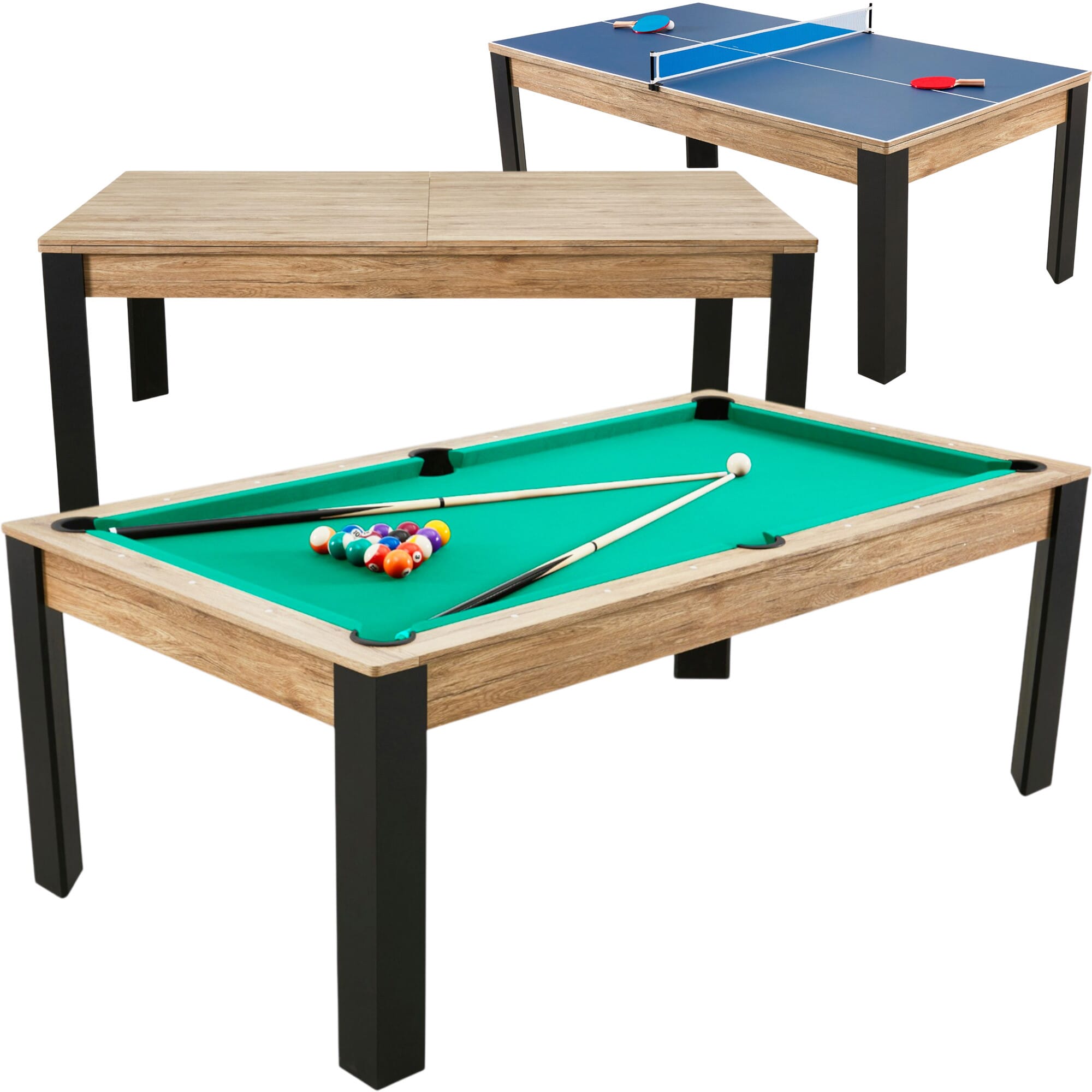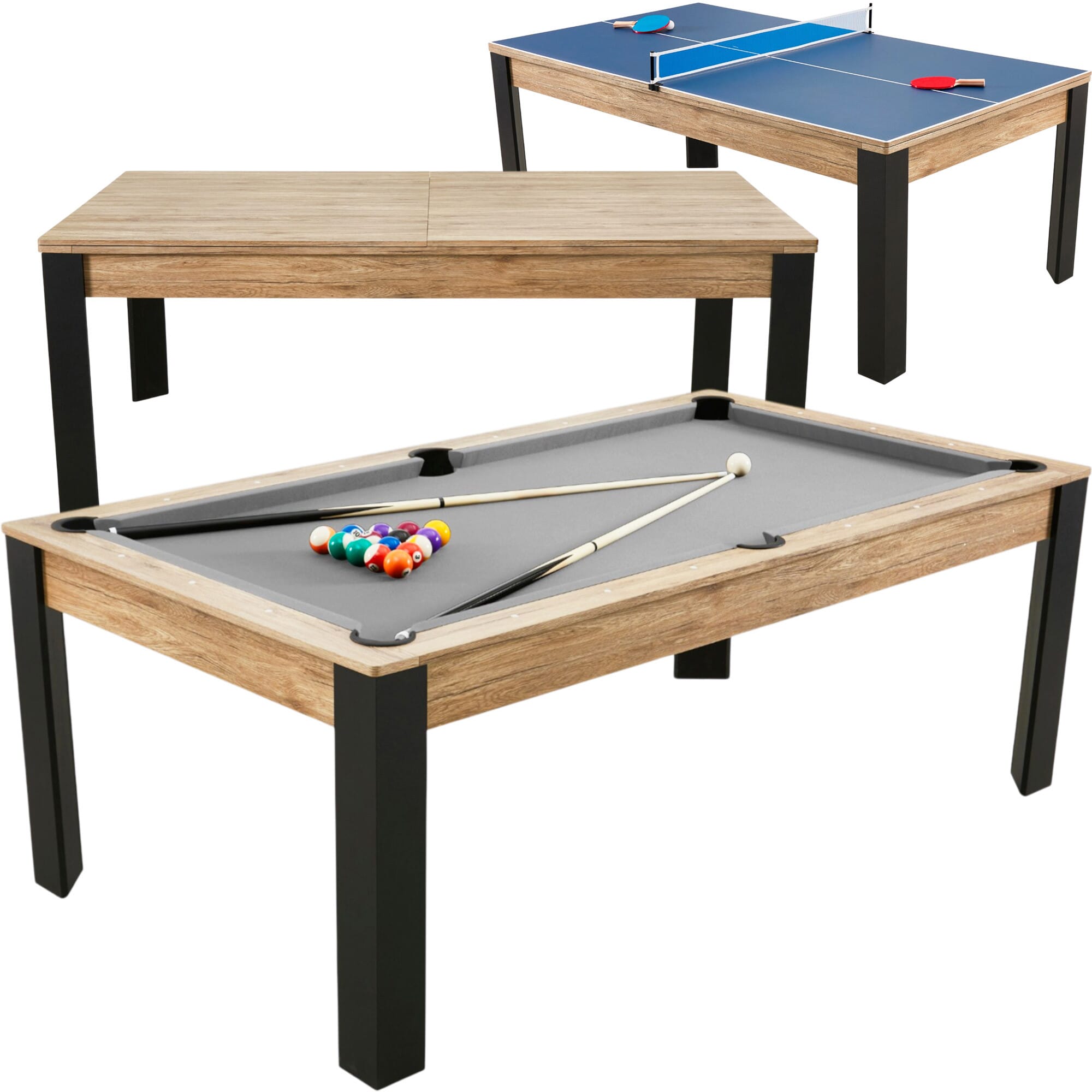 Le billard Prego 7 FT n’est pas seulement une table de jeu : c’est une table multifonction 3 en 1 qui combine intelligemment convivialité et divertissement.