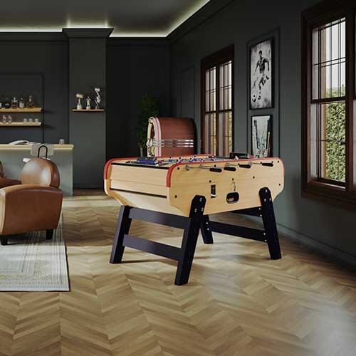 Impossible de parler de baby-foot sans évoquer Bonzini. C’est la référence absolue dans les bars français depuis les années 60. Le B60, avec son monnayeur mythique, et le B90 (version sans monnayeur) sont devenus cultes. Fabriqués à Bagnolet, en région parisienne, ces modèles incarnent la robustesse à la française. Bois massif, finitions impeccables, sensations de jeu inégalées… c’est simple : Bonzini, c’est l’élite.