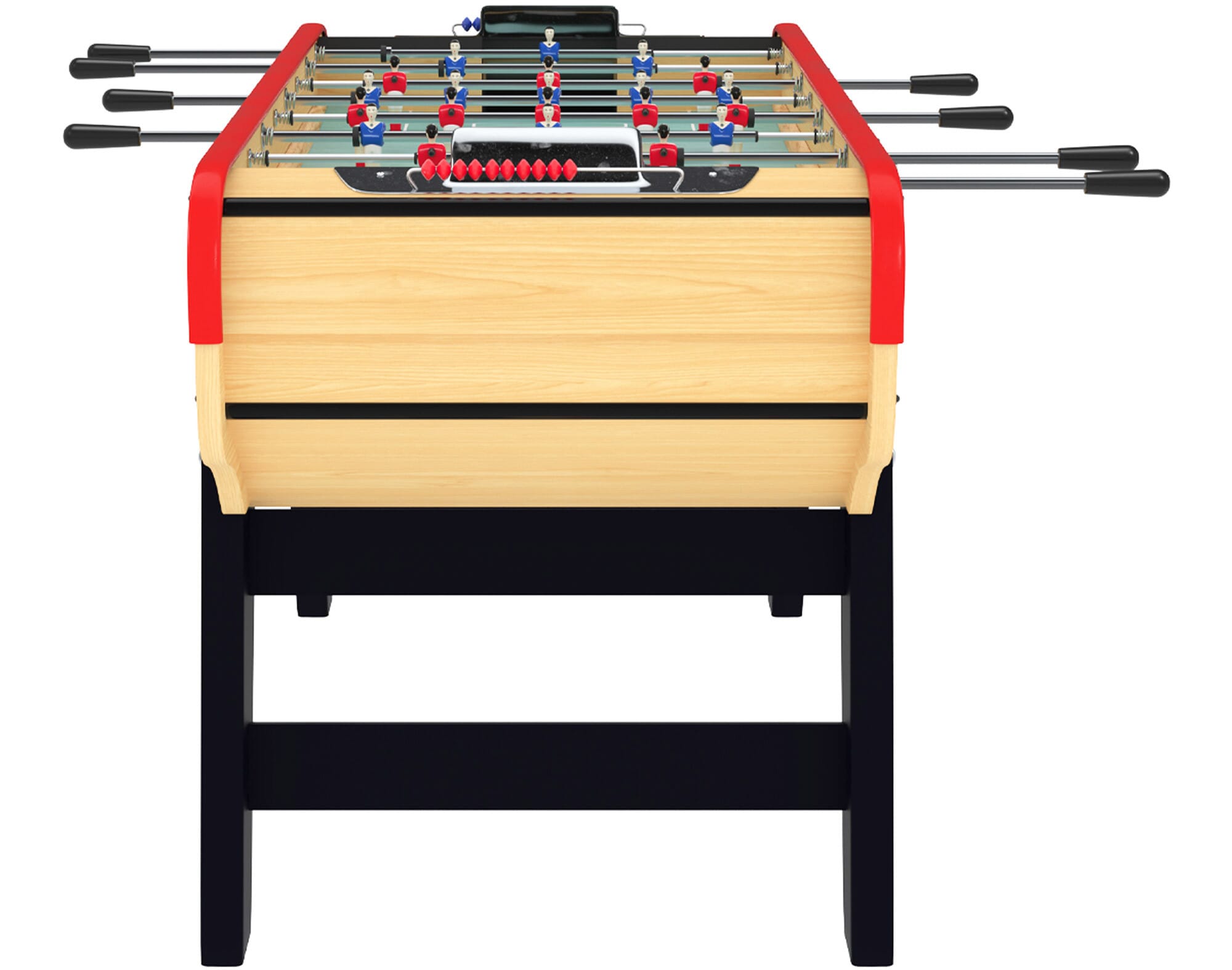 Côté technique, le baby-foot vintage Bistrot Bois Clair est conçu avec un meuble en bois coloris hêtre, une surface de jeu type Gerflex offrant un confort de jeu optimal, ainsi que des rampes rouges en plastique pour une meilleure prise en main. Ses joueurs en aluminium peints à la main glissent parfaitement sur le terrain, tandis que ses barres télescopiques en acier chromé sont résistantes et faciles à entretenir.