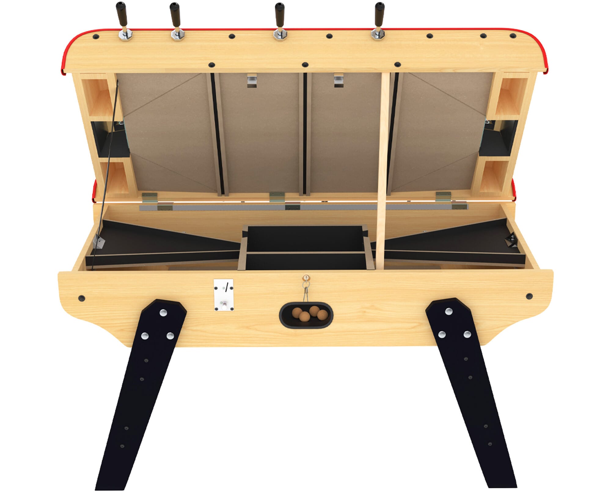 Équipé d’un monnayeur désactivable pour pièces de 0.50 €, ce modèle vous plonge dans l’univers des babyfoots de café tout en offrant une solidité et une résistance accrues aux chocs et à la déformation. Le Bistrot Bois Clair est parfait pour les joueurs exigeants tout autant que pour ceux qui cherchent simplement à passer un bon moment.