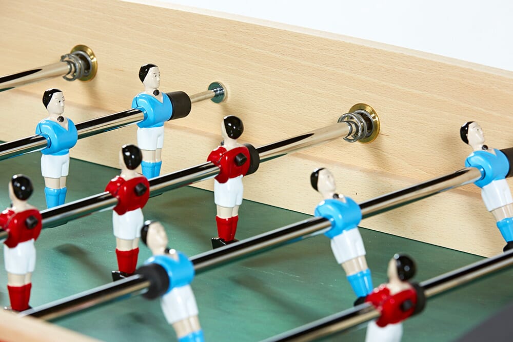 Le babyfoot compétition René Pierre vous propose donc un visuel semblable et similaire à celui des véritables babyfoot de bar et de troquet tout en offrant une qualité de jeu exceptionnelle pour un modèle destiné à des particuliers, bars ou collectivités qui n’ont pas besoin d’un monnayeur.