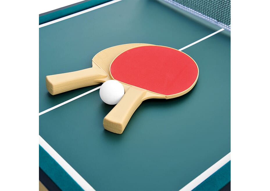 Ping Pong : Pas fait pour, table trop petite. Mais 2 raquette et 2 balle nickelles pour votre table de salon !