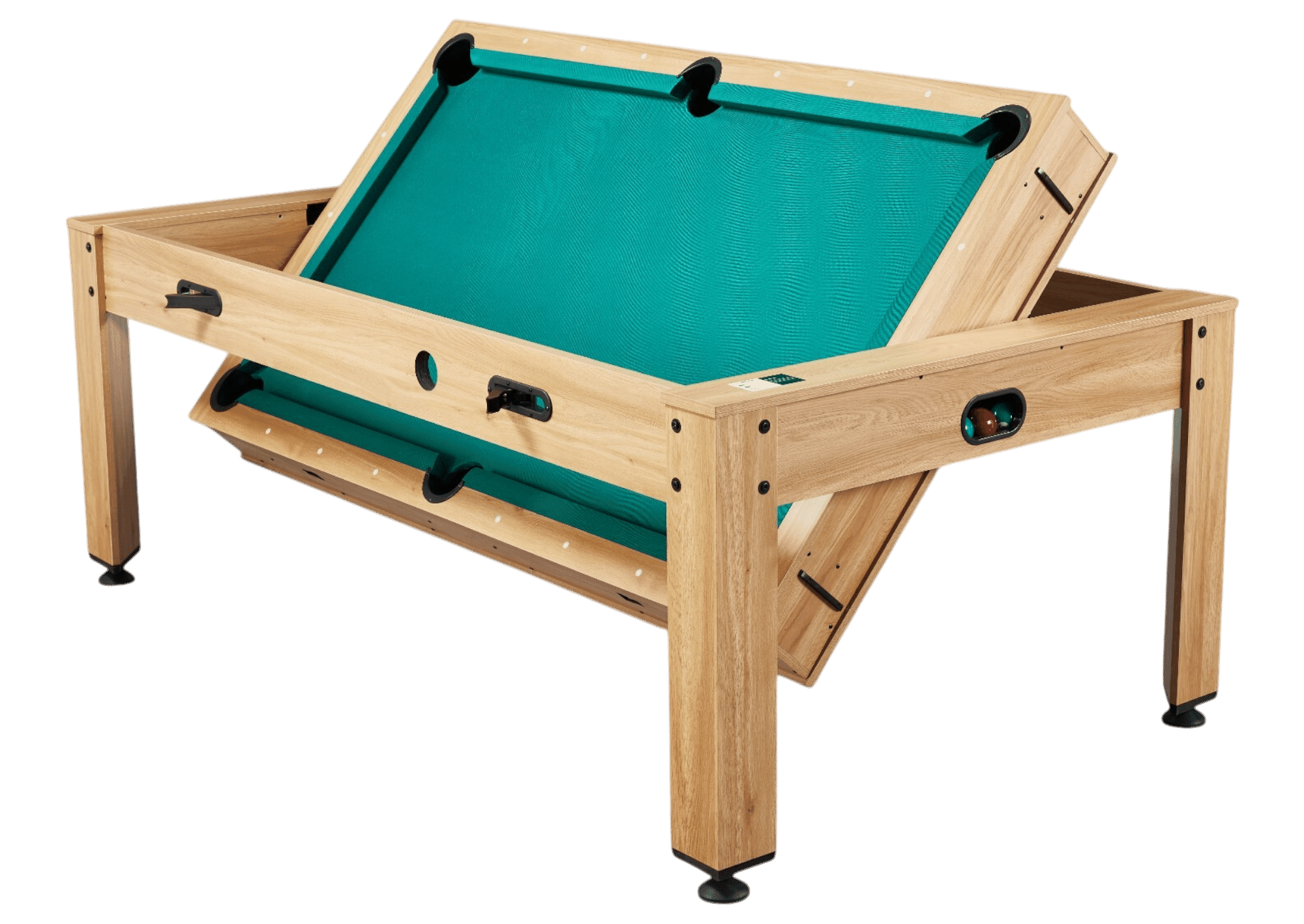 Grâce à son système rotatif intégré, la table change de fonction en quelques secondes. Les quatre verrous de sécurité assurent une parfaite stabilité dans chaque position, même en cas d’usage intensif. Vous passez ainsi d’un jeu à l’autre sans effort et en toute sécurité.