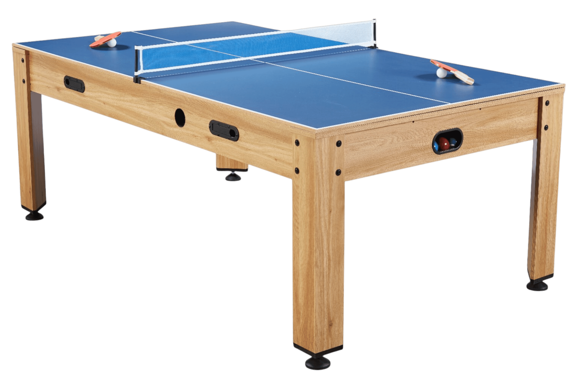 La Table Multi Pro Rotative 7FT séduit par sa finition en bois clair, élégante et chaleureuse. Associée à des détails plus sombres, elle apporte du contraste et un style moderne qui s’intègre aussi bien dans une pièce contemporaine que dans une salle de loisirs conviviale. Plus qu’un simple meuble de jeu, elle devient un véritable élément de décoration.