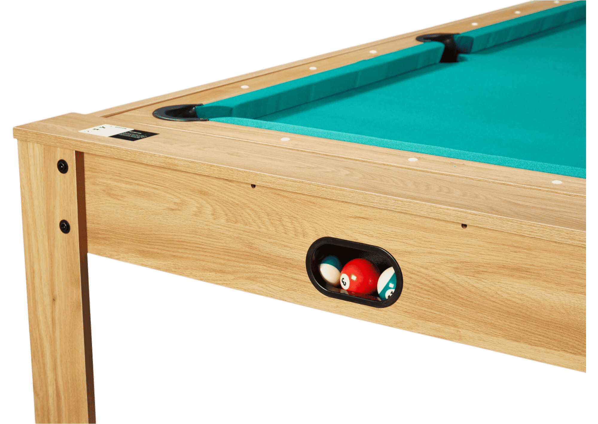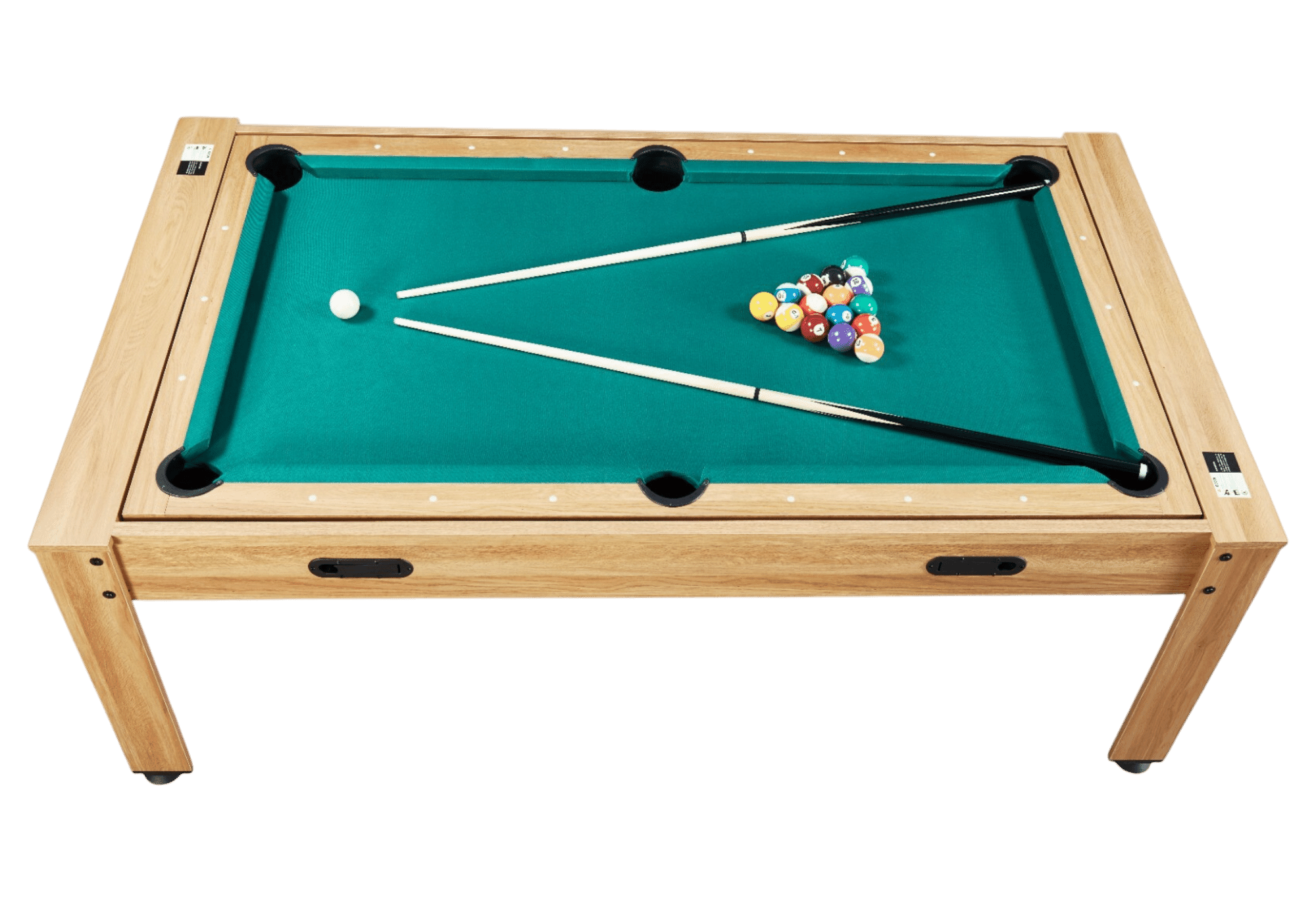 La surface de jeu de 7 pieds (162 × 85 cm) est équipée d’un tapis vert en laine et nylon, réputé pour sa vitesse et sa précision. Les bandes K55 offrent des rebonds constants et fiables, comparables à ceux d’un billard semi-professionnel. Avec ses accessoires inclus – 2 queues de 145 cm, un jeu de boules américaines, un triangle et une brosse – vous êtes prêt à jouer dès l’installation.